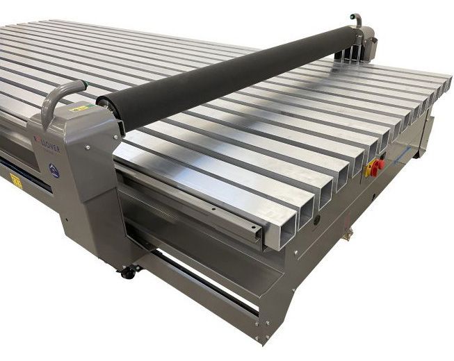 The Rollover Classic Traffic is an innovative and highly efficient system designed to streamline the production of road signs. Its unique design features a special bed of 14 aluminium rails that can be manually adjusted to fit nearly any extruded guide sign panel, ensuring a fully supported panel and professional finish every time. The pneumatically controlled roller can be adjusted for substrates up to 90mm thick, providing versatility for various materials.